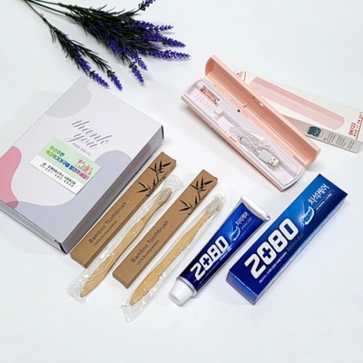 선물세트 4종 칫솔살균기 치약 대나무칫솔