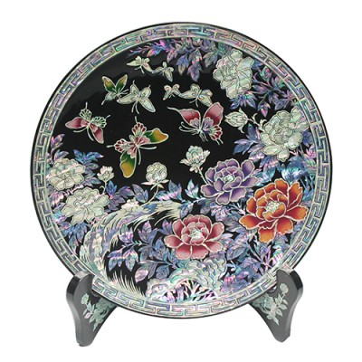 자개원쟁반(미니)-목단(흑)