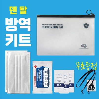 코로나방역키트- PVC지퍼백/덴탈마스크2개/손세정티슈10매/손소독제3개/마스크스트랩(무료증정)