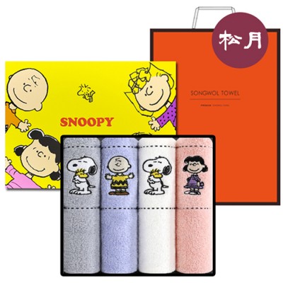 송월타월 S.P 스누피 프렌즈 풀패키지 4매입 세트 + 쇼핑백